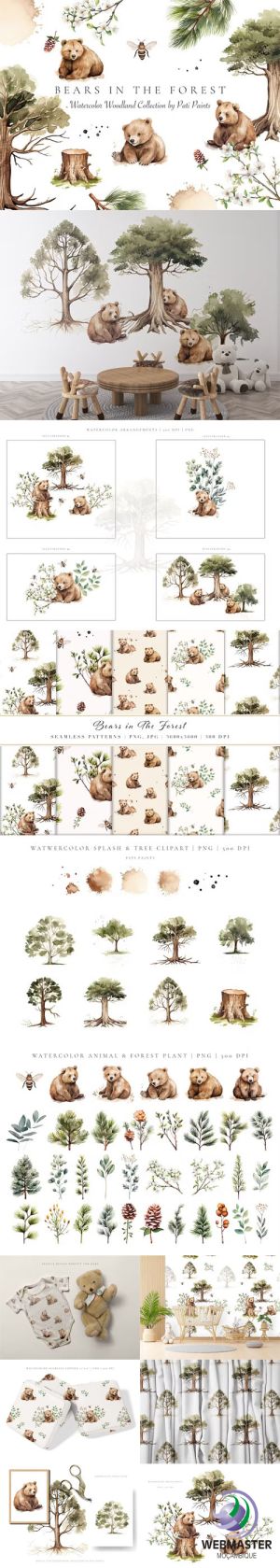 Bears in the Forest - Watercolor Woodland Collection